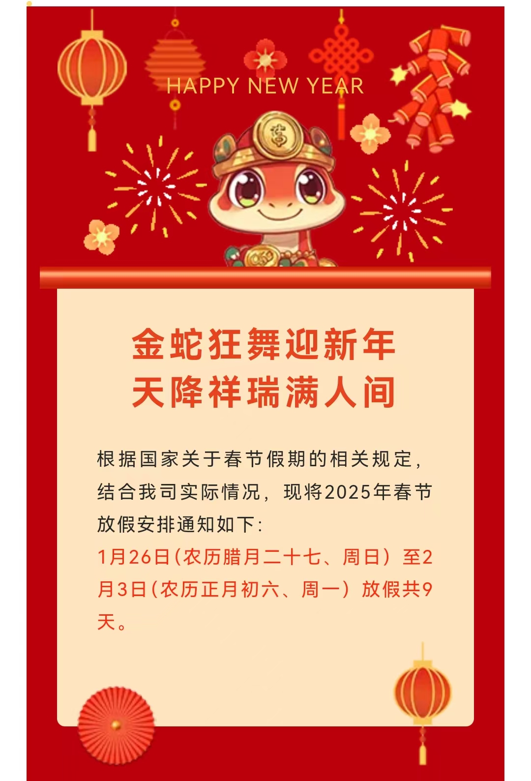 2025年春節(jié)放假通知