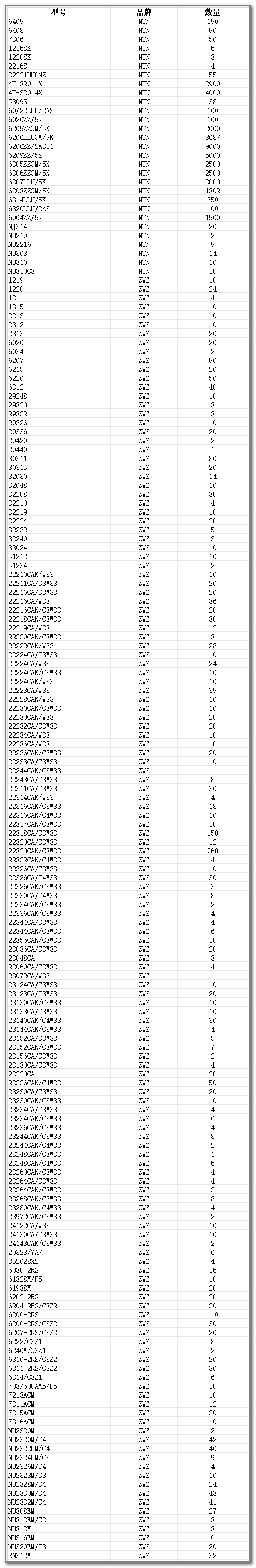 鄭州流通一號店品牌運營有限公司現有一批全新NTN、ZWZ軸承到貨,型號豐富(詳見下表)。誠邀新老客戶來電咨詢,歡迎訂購!